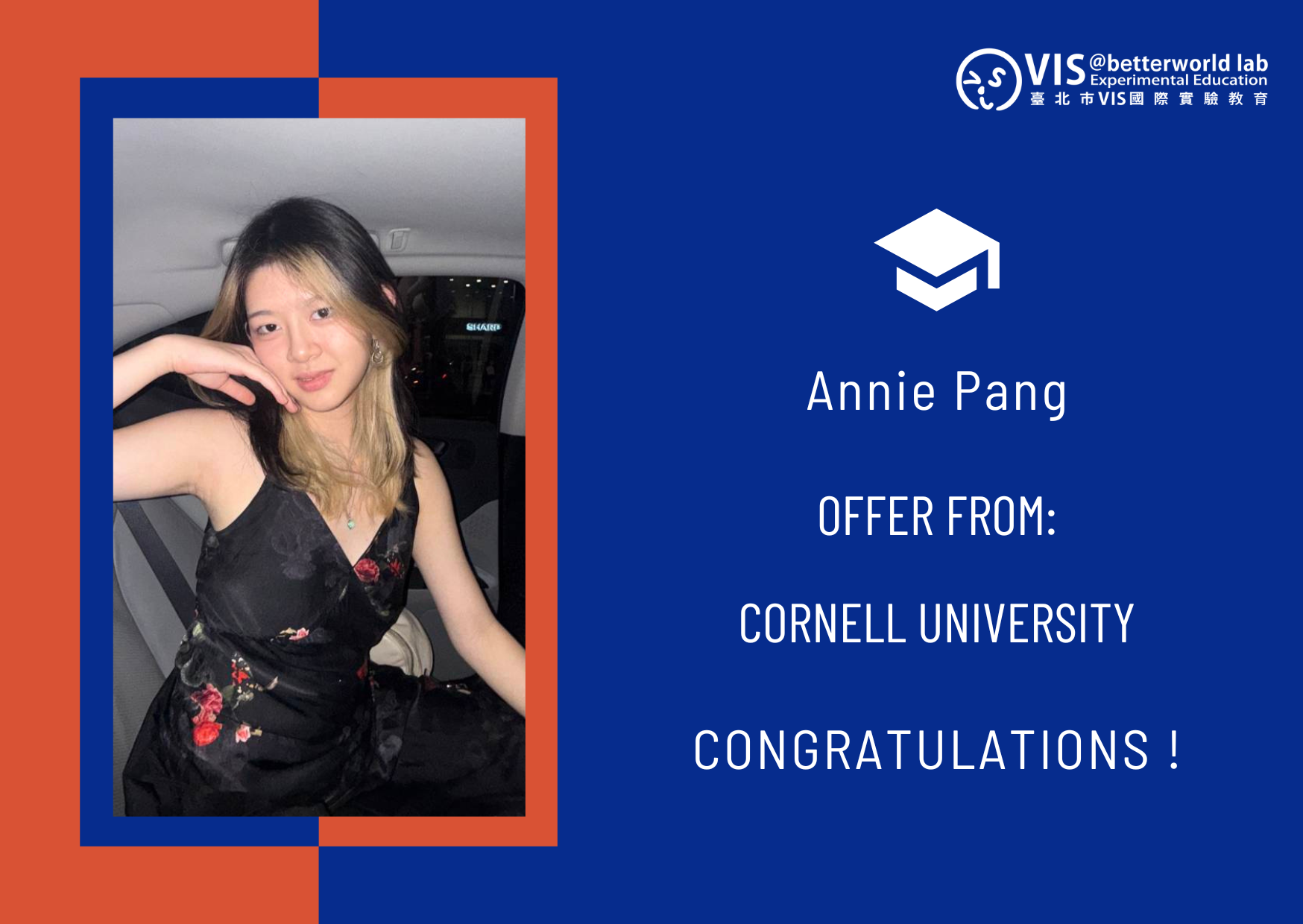 恭喜Annie Pang,也感謝家長的信任。VIS 將持續陪伴學生,走向世界頂尖學術殿堂,並在專業領域中建立長遠影響力。