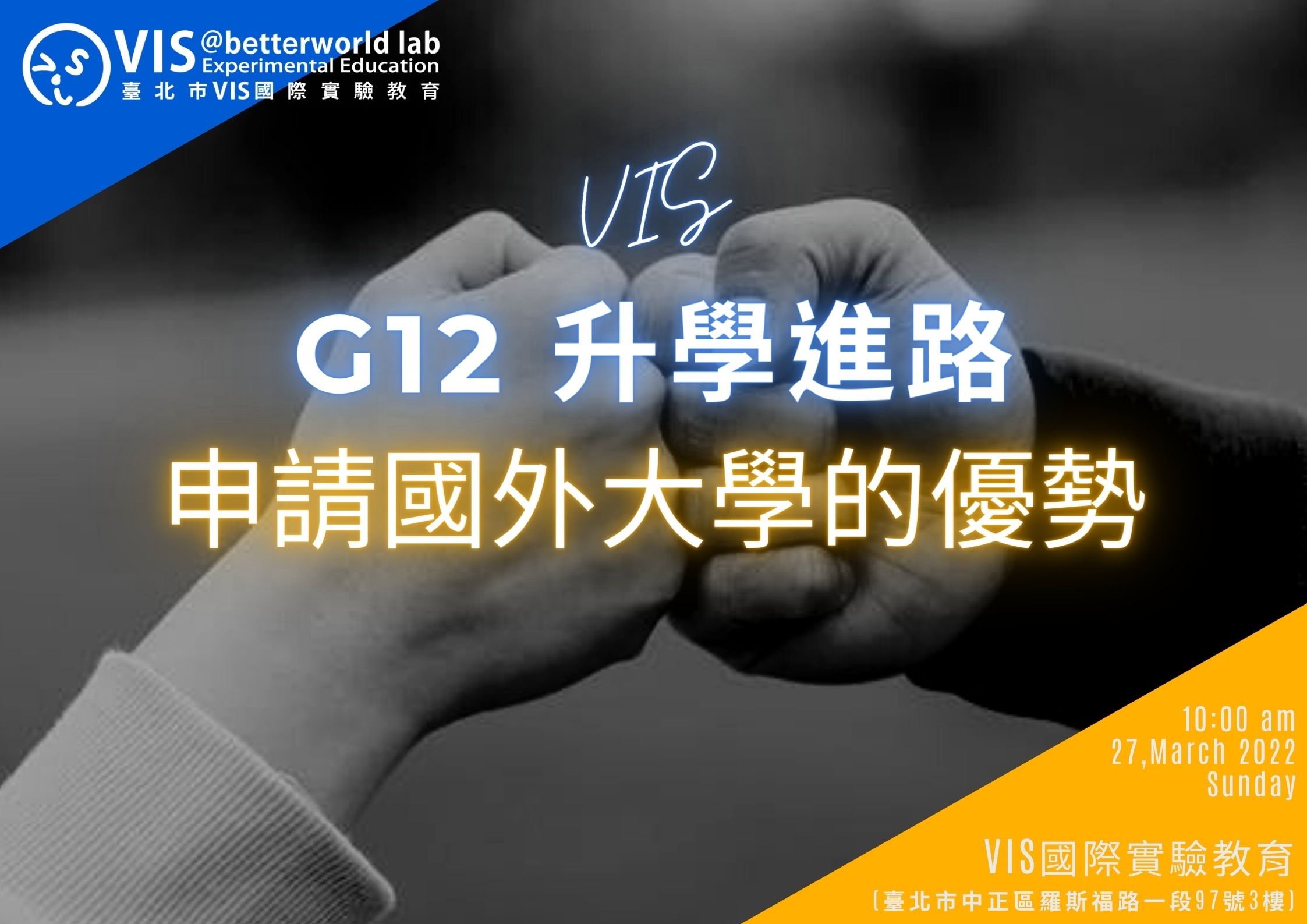 VIS為孩子預備了完善的國外升學進路,誠摯邀請G11的家長及同學3/27務必出席參加,更加了解#屬於自己的升學優勢並及早開始行動!
