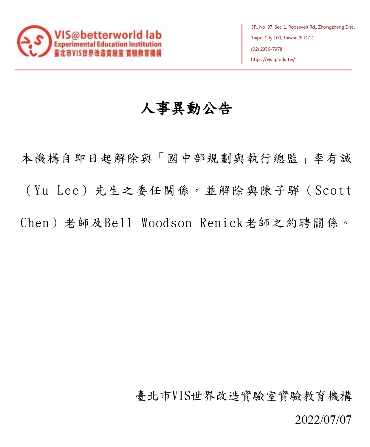 VIS 國際實驗教育 高中部/國中部/小學部 G05~G12