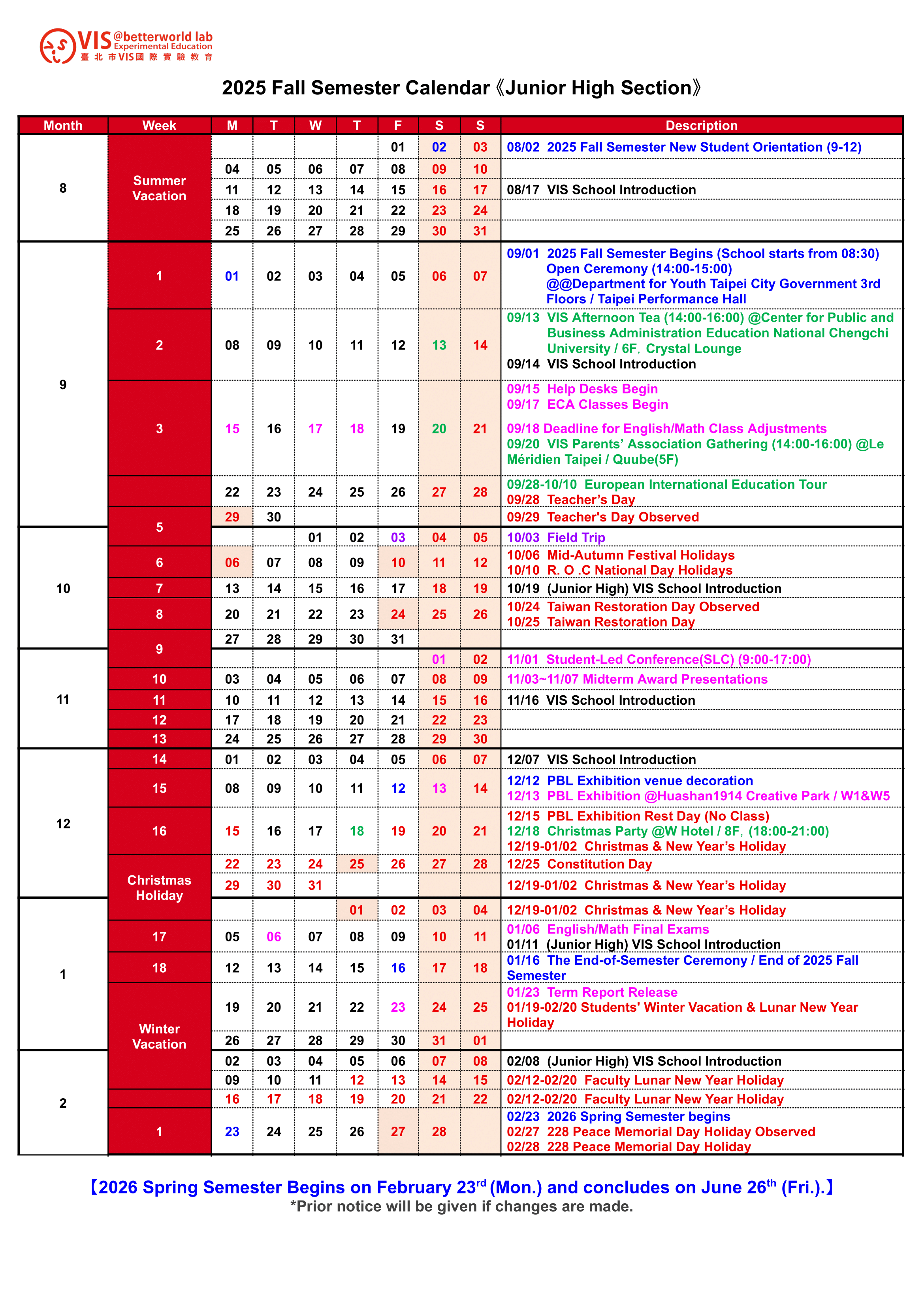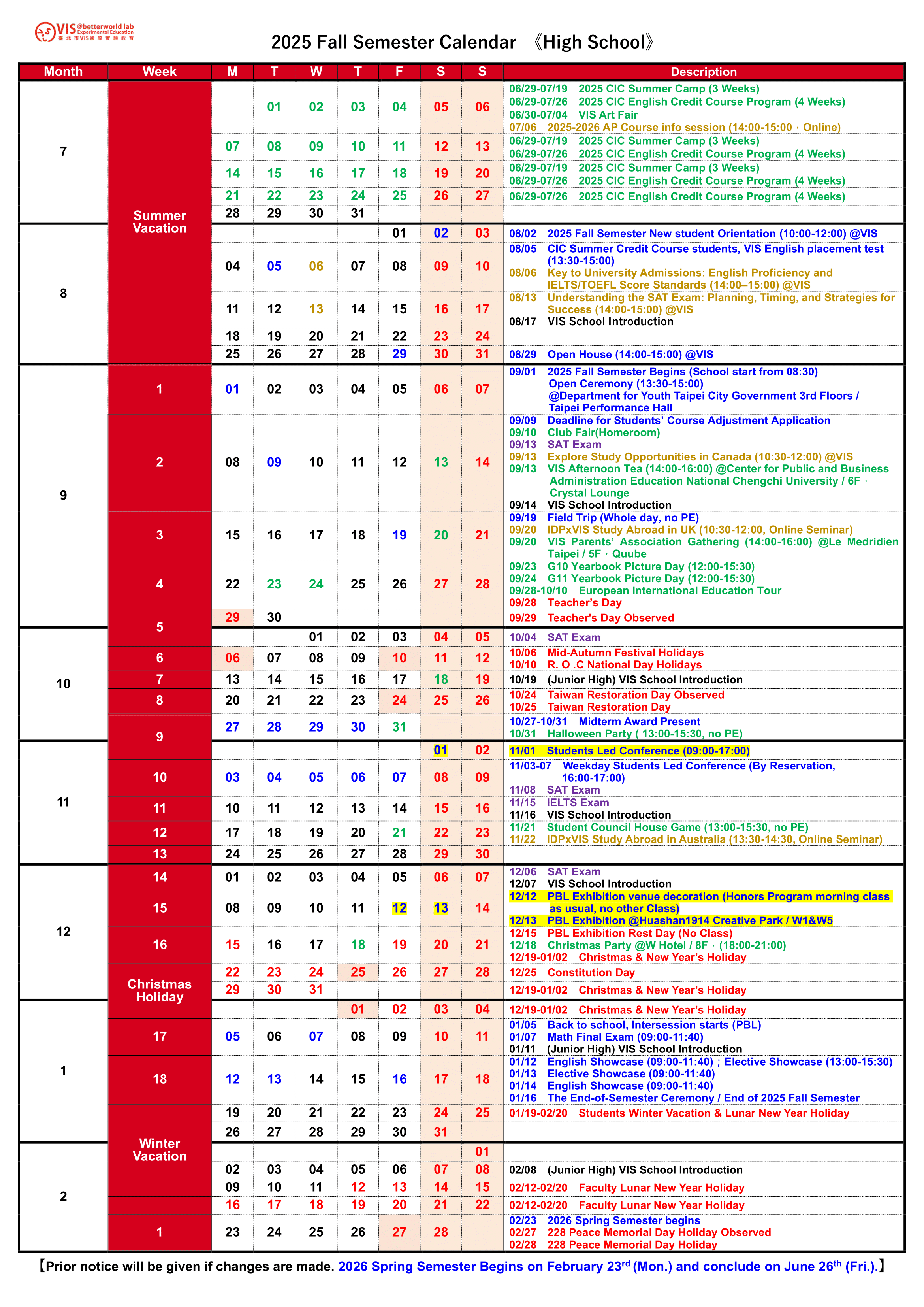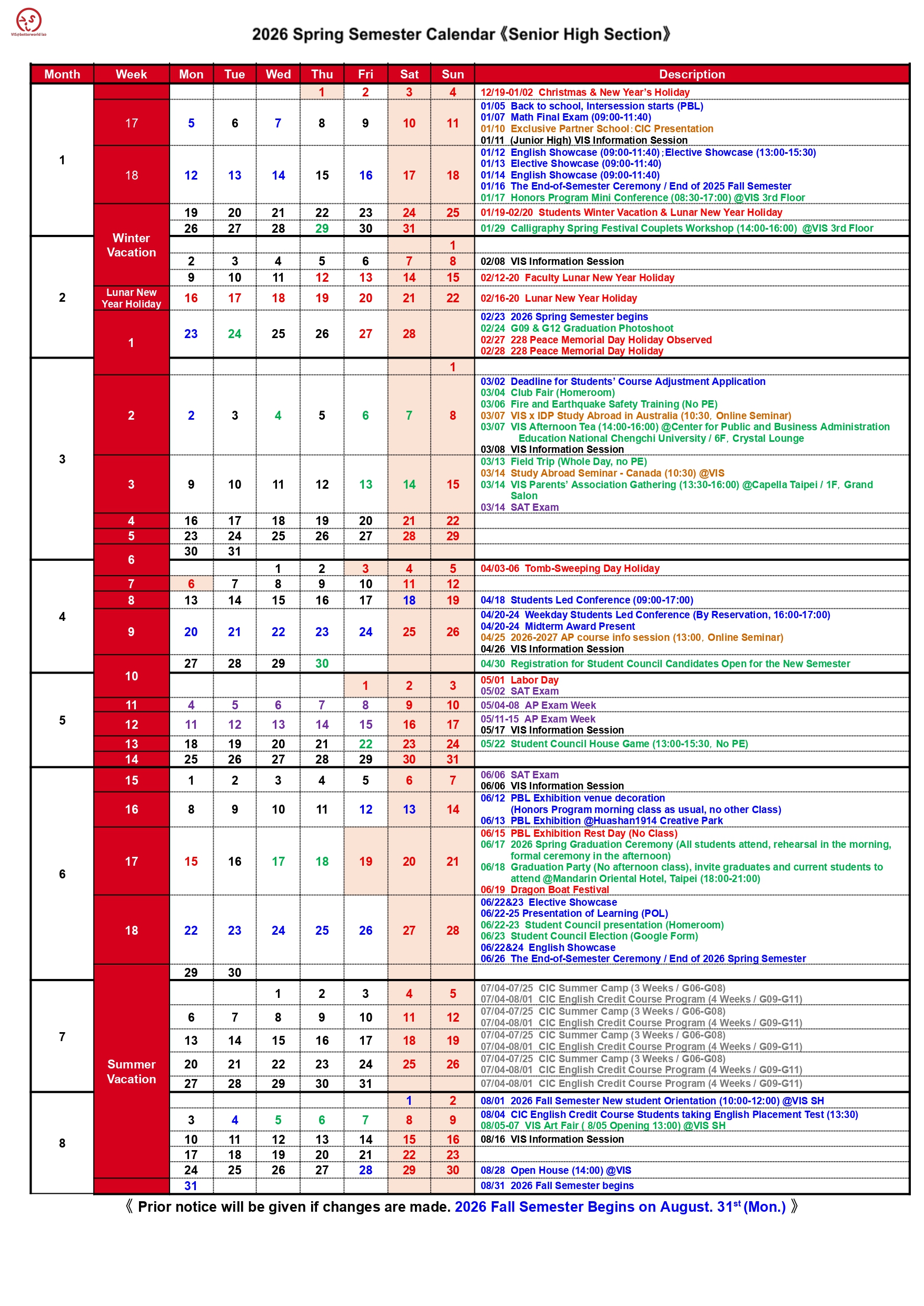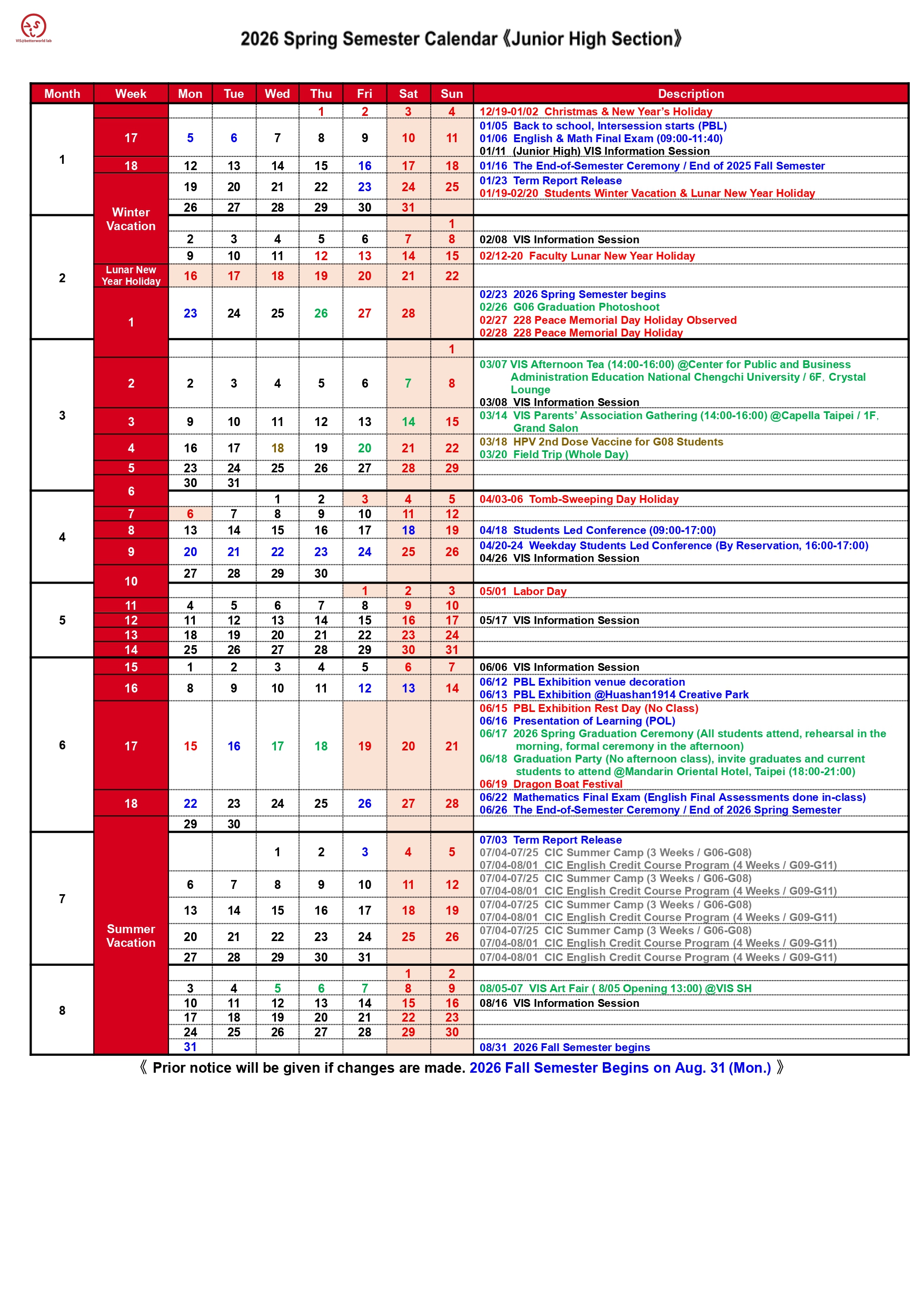 VIS 國際實驗教育 高中部/國中部/小學部 G05~G12