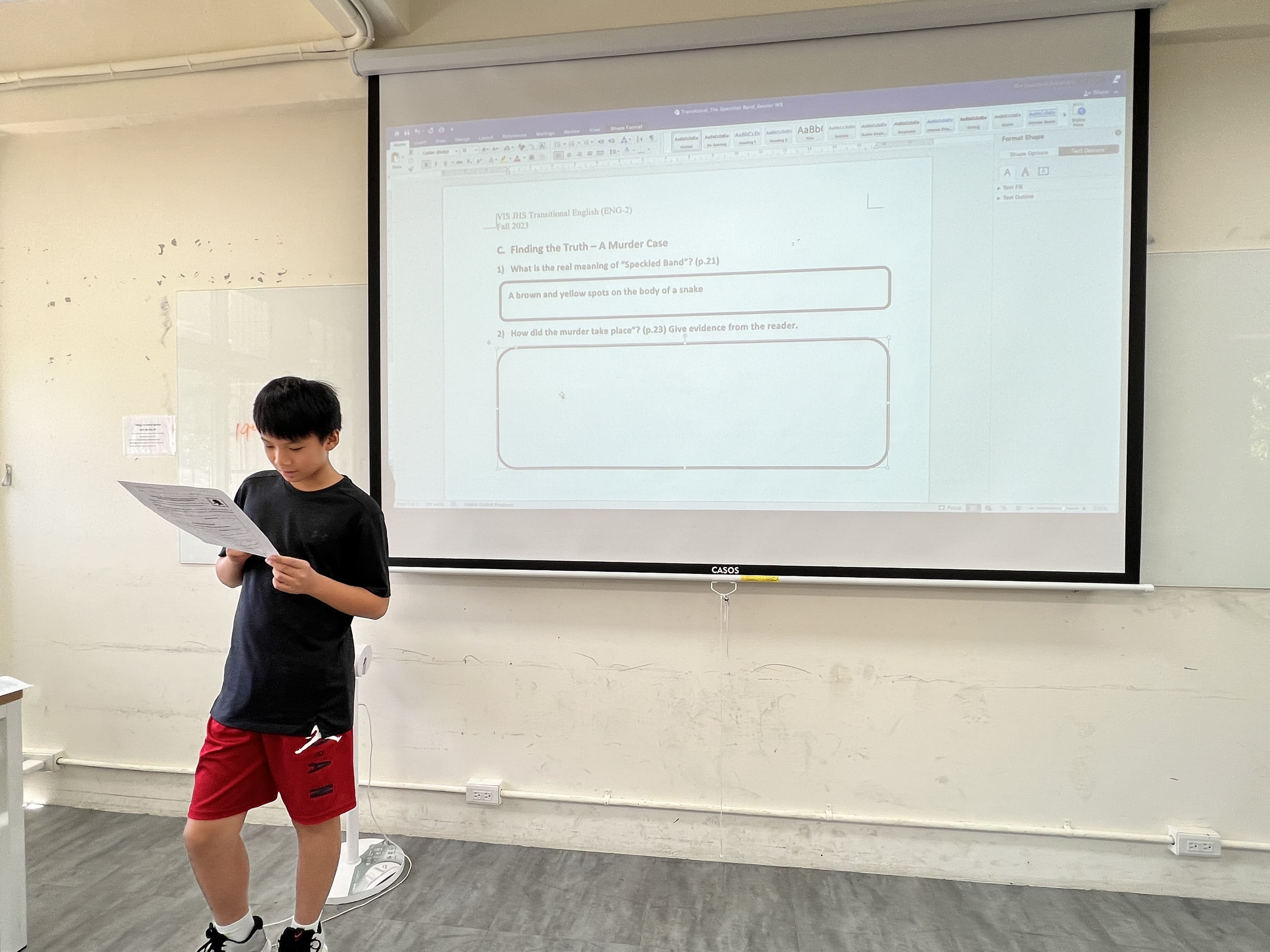 The students in this class are reading a detective story of Sherlock Holmes recently. In order to get them more engaged in the story, they were asked to investigate and report the crime case in a text form – An investigation Report.