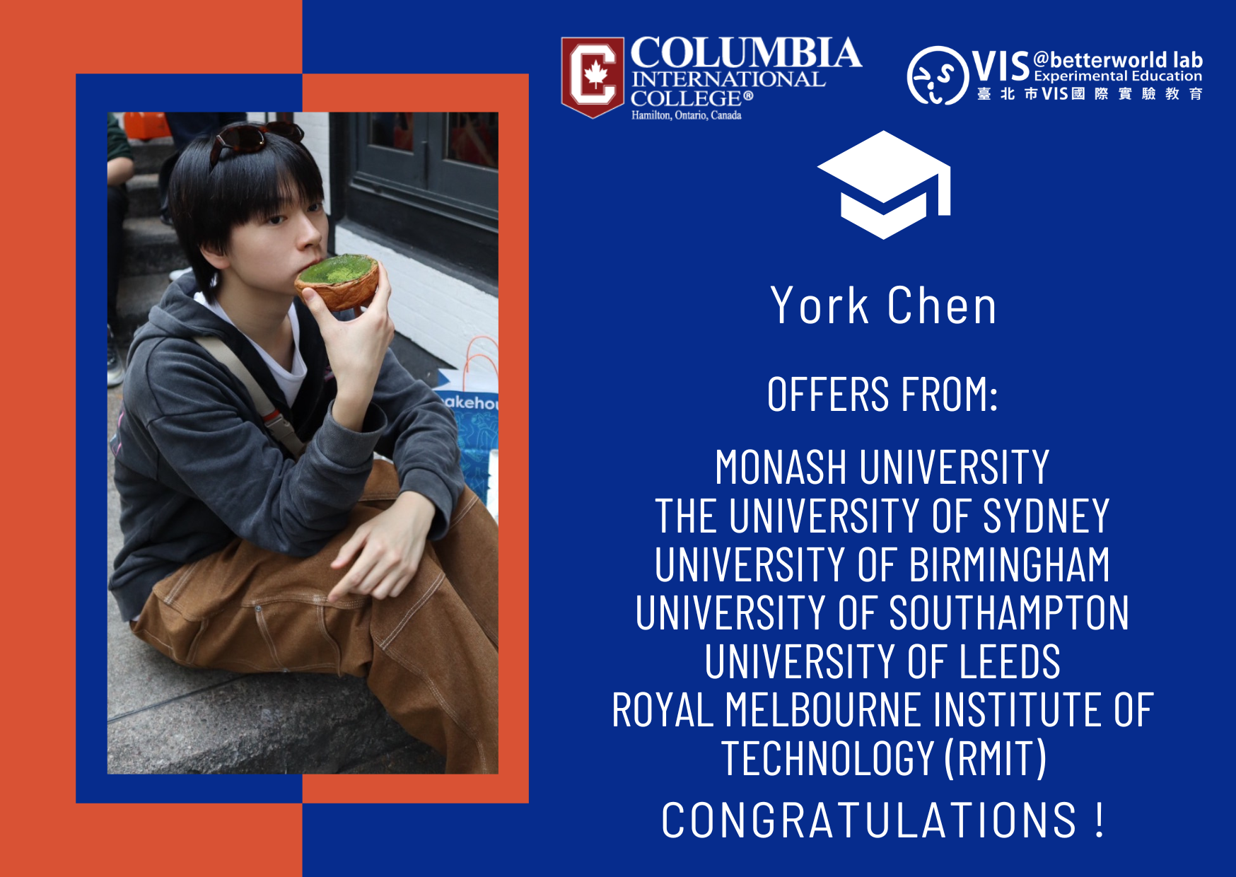 We are thrilled to announce that York Chen, a Grade 12 student at our Canadian partner school CIC, has received multiple offers from top universities worldwide!