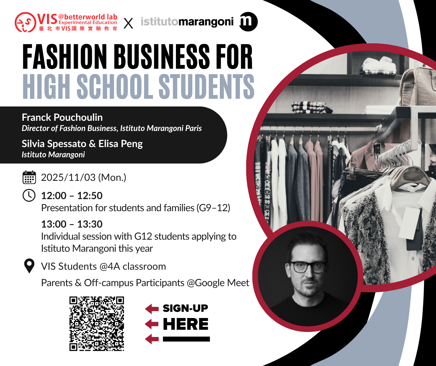 誠摯邀請所有對時尚領域感興趣的VIS學生與家長參加,特別是對**歐洲時尚、時尚商業(Fashion Business)或時尚設計(Fashion Design)**有興趣的同學。