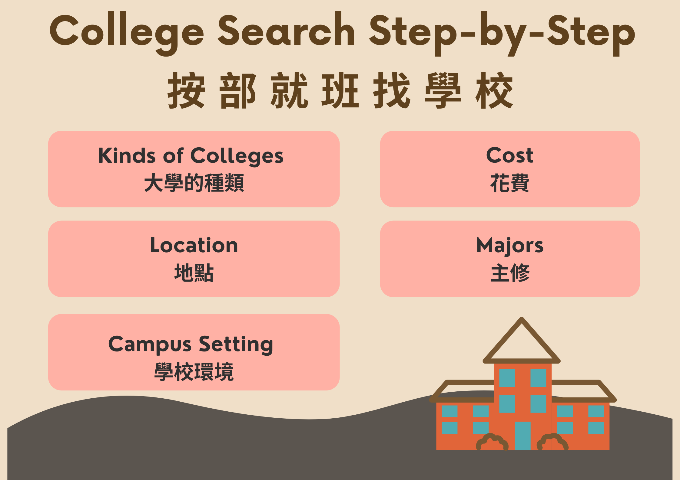 ●Learn about some key college search categories.了解關鍵的大學搜尋類別。