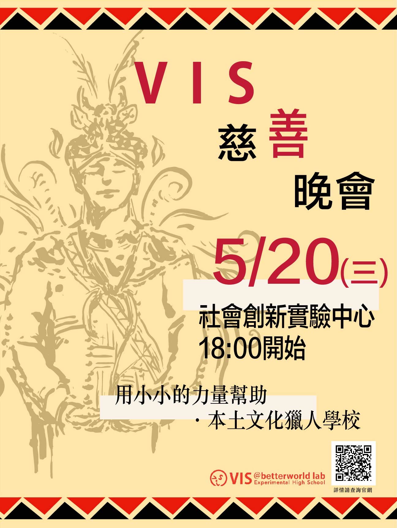 可惜的是獵人學校在2019五月遭惡火吞噬,無法再提供一所與大自然共舞的快樂天堂。VIS國際實驗高中在寒假的台東服務學習中認識了台灣原住民的故事及文化,我們想持續幫助台灣原住民,因此籌辦了這次的音樂晚會,為台東獵人學校付出一點心力。我們會將募款到的金額全數捐出,幫助獵人學校的重建工程,再次找回「尊榮與謙卑的獵人文化」。