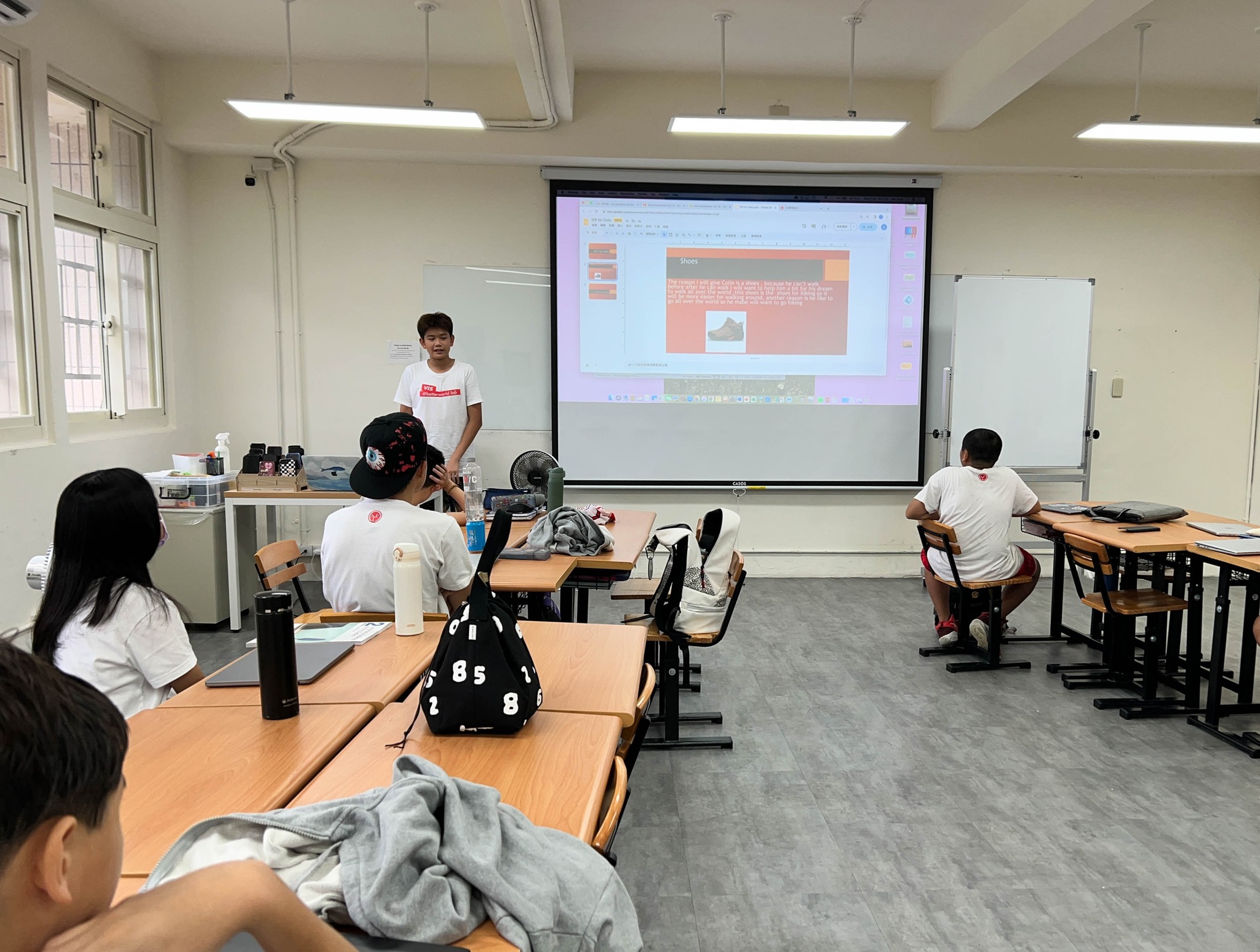 There was an oral presentation in class. Before the lesson, students were asked to prepare a gift for a character learnt from the reader.