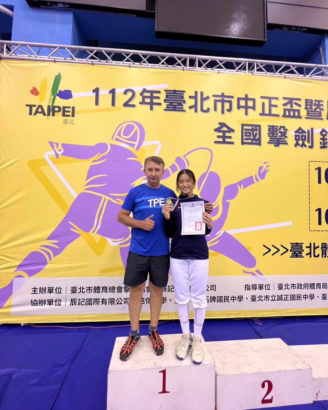 她在校外的卓越表現榮獲 112年台北市中正盃暨辰記盃 #全國擊劍錦標賽 國中女子銳劍項目第一名