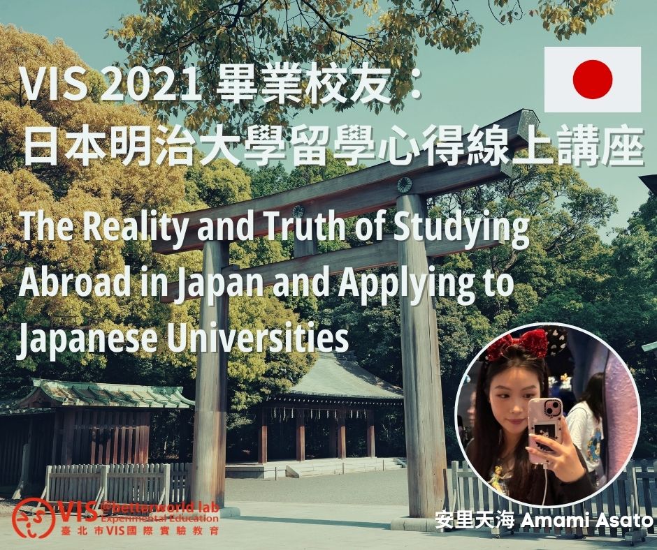 來自 日本明治大學 的安里天海 Amami Asato,2021 VIS 畢業校友,舉辦關於日本大學留學分享線上講座!