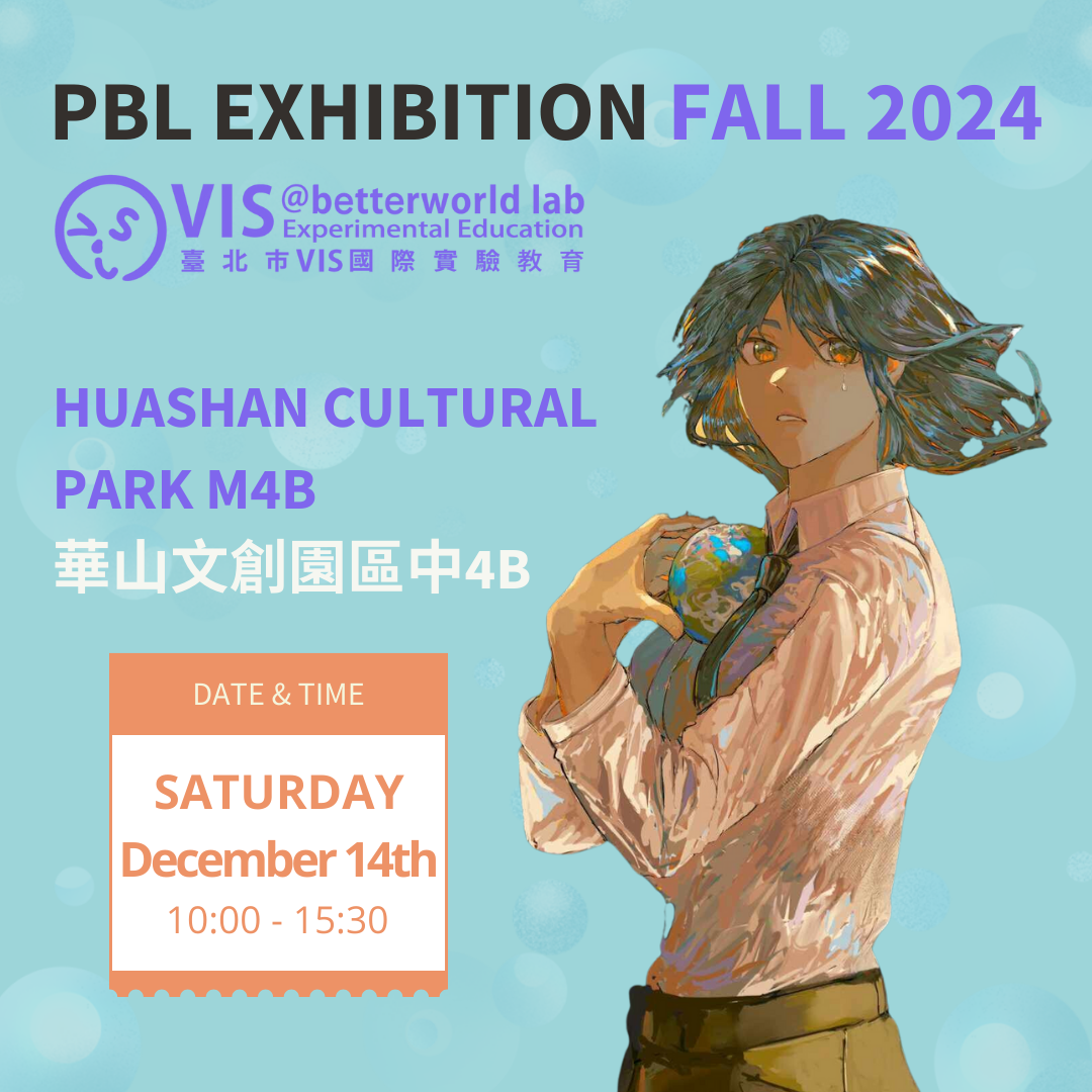 VIS@betterworld Lab Experimental Education is excited to invite you to our Fall 2024 Project-Based Learning (PBL) Exhibition! On December 14th, students from Grades 6-12 will present their semester projects at Huashan 1914 Creative Park M4B.