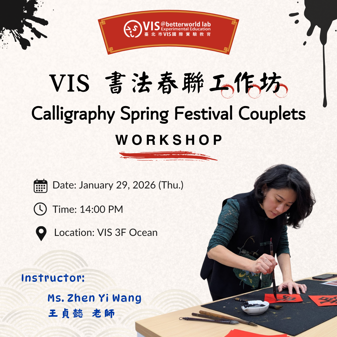 VIS 有幸邀請 王貞懿老師 蒞臨指導,並教大家如何書寫春聯,感受傳統文化的魅力。