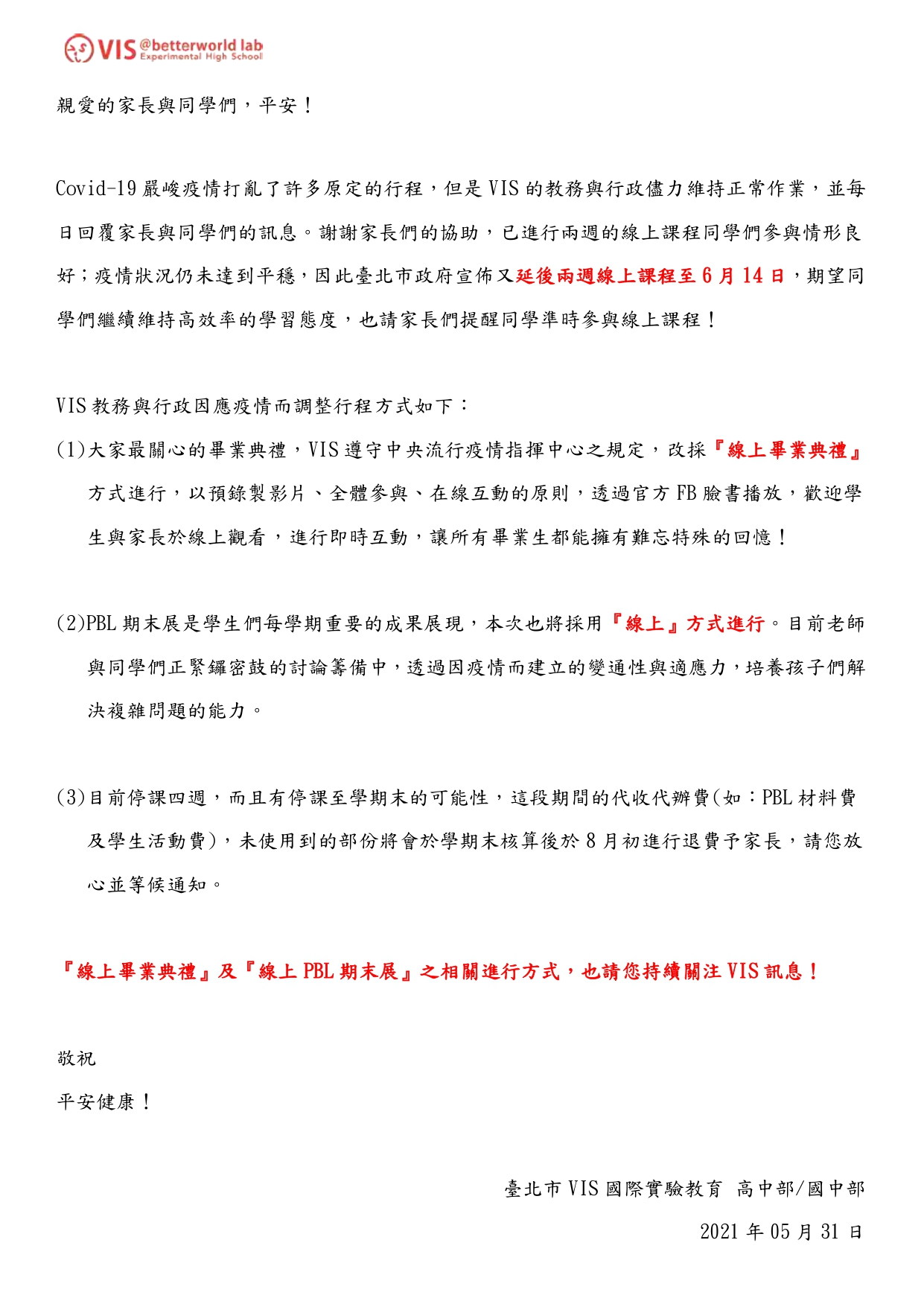 VIS 國際實驗教育 高中部/國中部/小學部 G05~G12