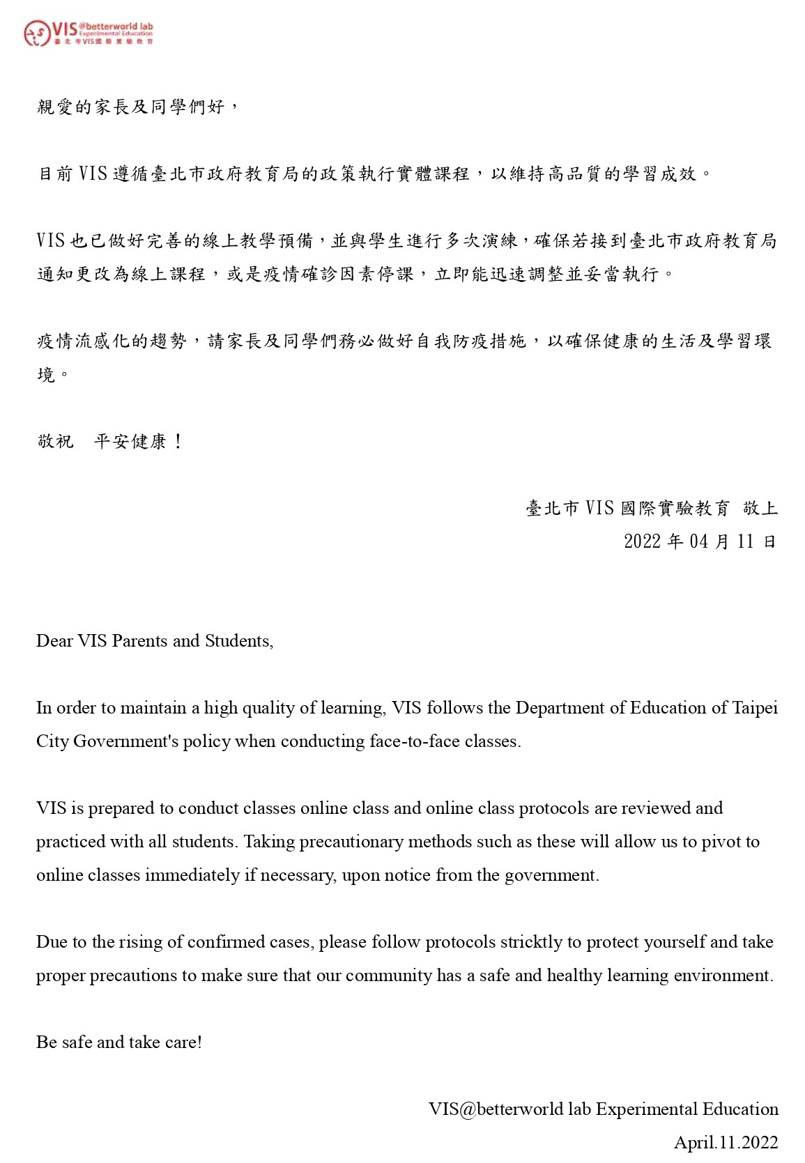 VIS Epidemic Prevention Policy / VIS防疫政策公告-17