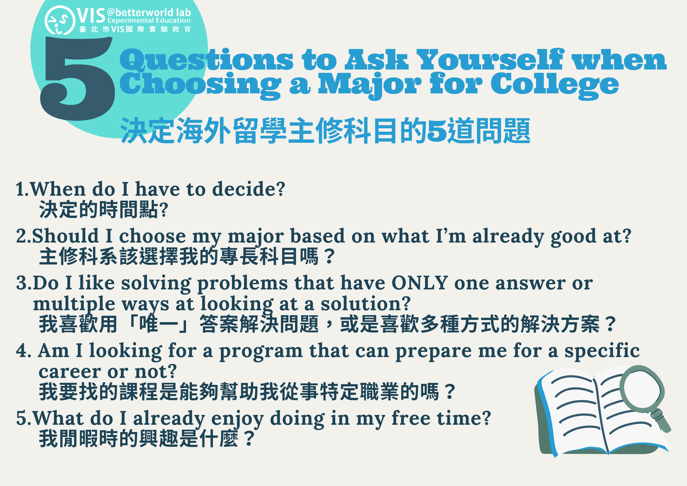 VIS 同學們最疑惑的問題之一,就是決定大學裡的學習領域和主修科目。
