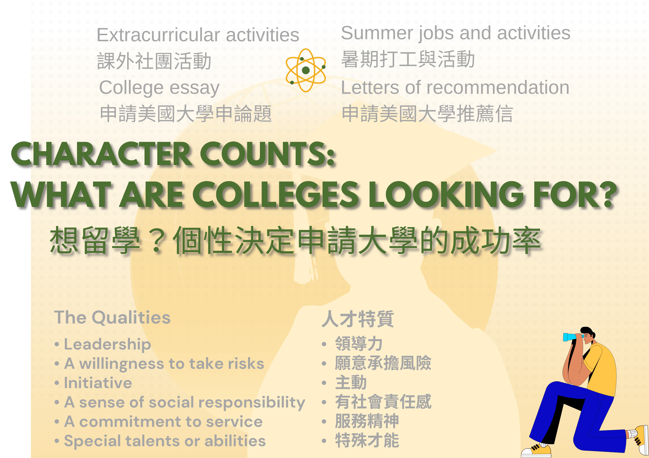 申請美國大學,該怎麼讓自己獨特、突出?個人特質畢竟不容易評量,但是考官還是會從以下項目了解申請人的特性。