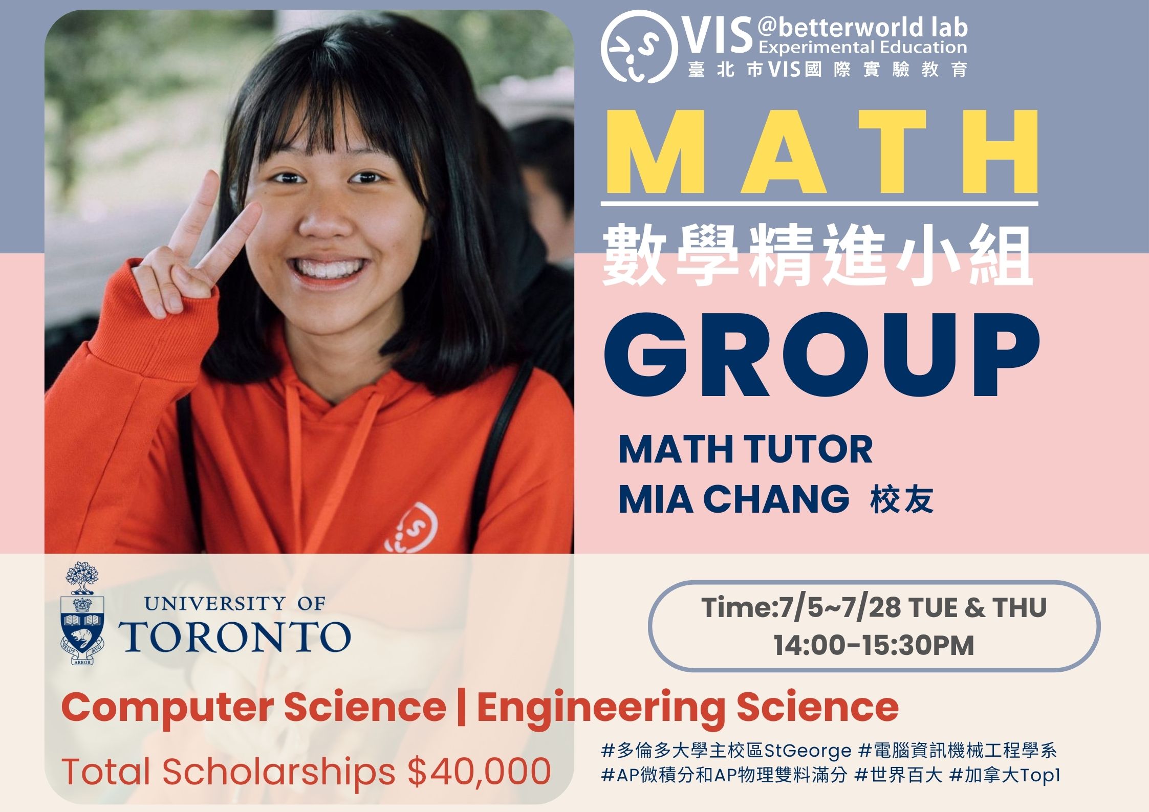 非常榮幸能邀請Mia來指導大家數學!