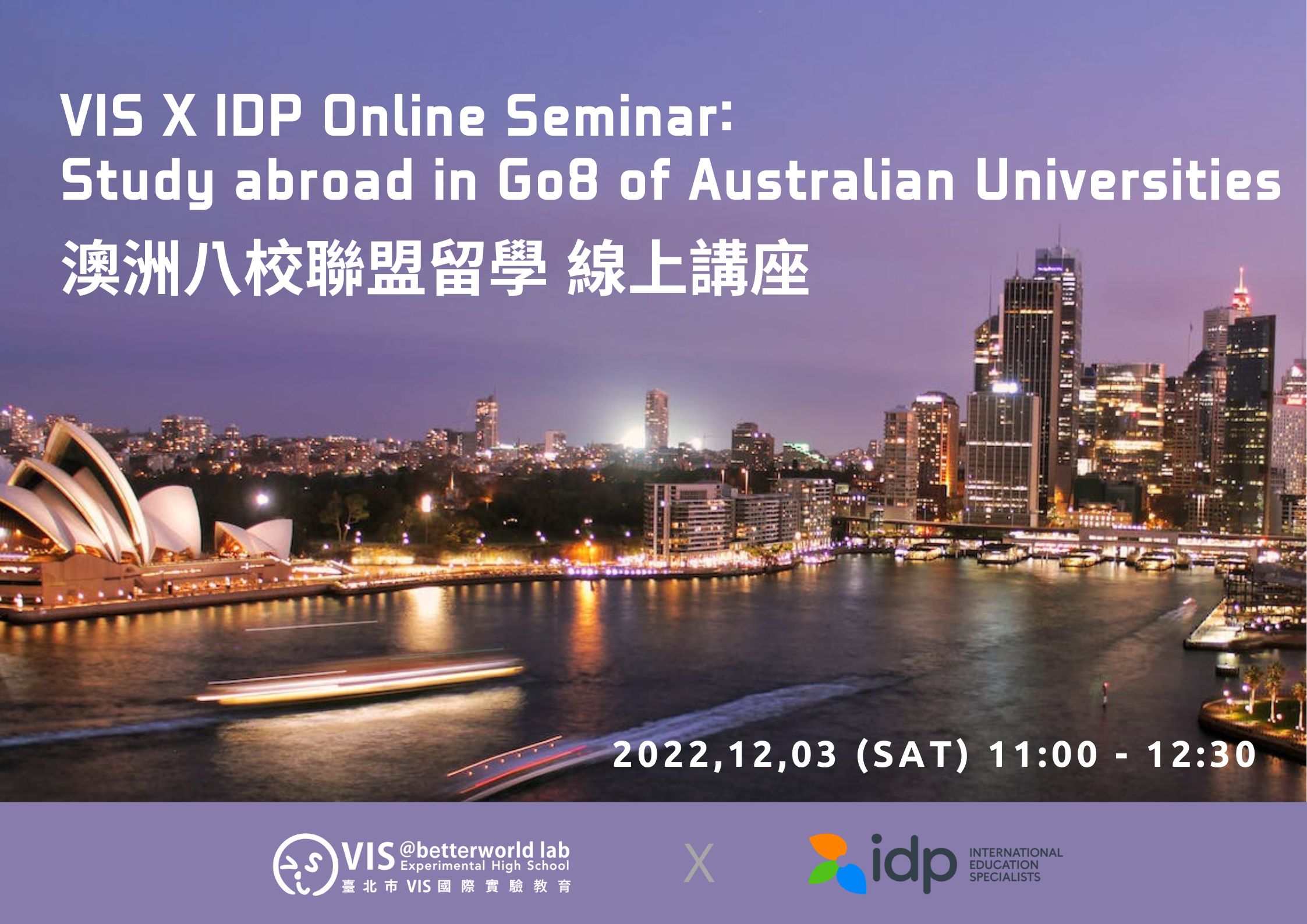 VIS X IDP Online Seminar: Study abroad in Go8 of Australian Universities / 澳洲八校聯盟留學 線上講座