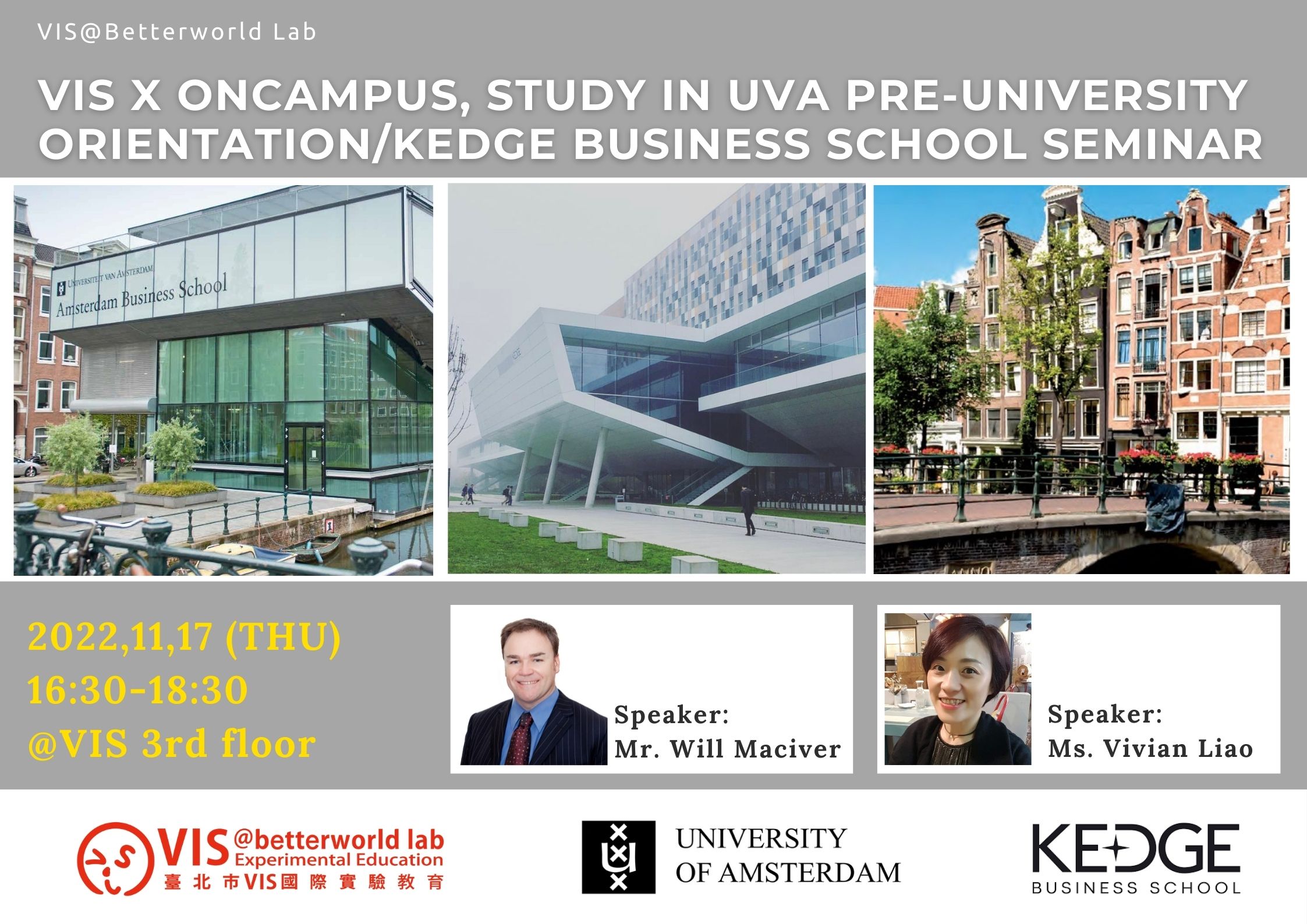 【VIS x Oncampus, Study in UvA Pre-University Orientation/KEDGE Business School Seminar】