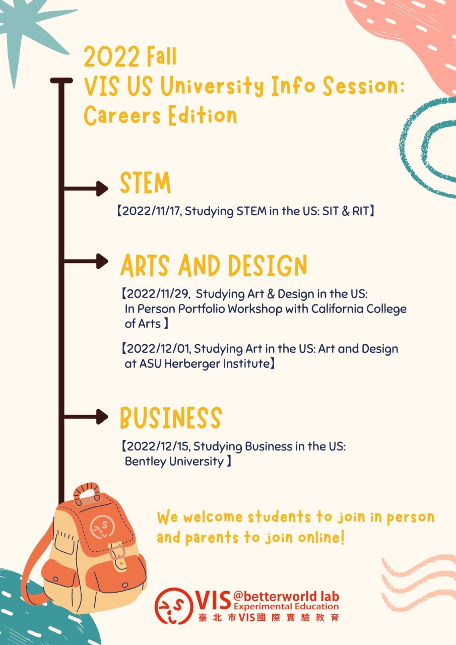 VIS將舉辦一系列線上講座,由美國大學代表演講,內容包括以下專業
